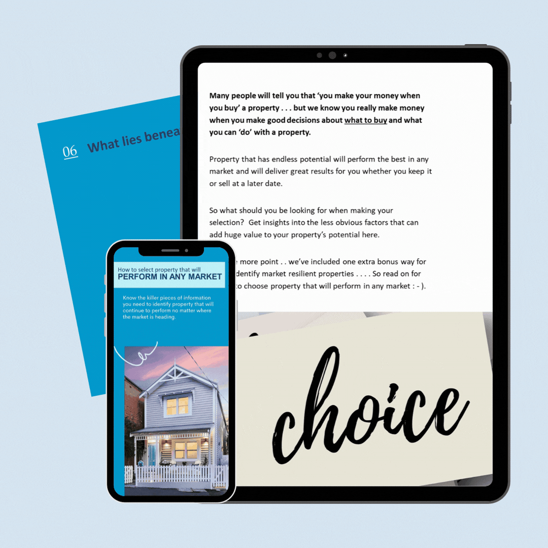 By using the 'How to select property that will perform in any market guide', you'll be able to focus on properties that are best for you, be confident about the price, make great offers and achieve your property goals without being tripped up by tricky real estate agents.